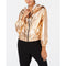 Material Girl's hooded windbreaker is the most fashion-forward layer in your closet with its metallic sheen and semi-sheer finish.