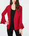 A curved front contributes to the modern look of a DKNY collarless jacket in a unique and refreshing hue.