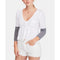- V-neckline; snap closures at gusset