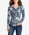 A striped hem sets off the chic snake-embossed print on this enviable MICHAEL Michael Kors top, styled in a tunic length with a lace-up V-neckline. Hits below hip. Striped band hem