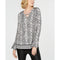 Bold and beautiful: this JM Collection petite top features contrasting black and white against a lively, colorful floral print complete with a beaded cuff and rhinestud keyhole neckline.